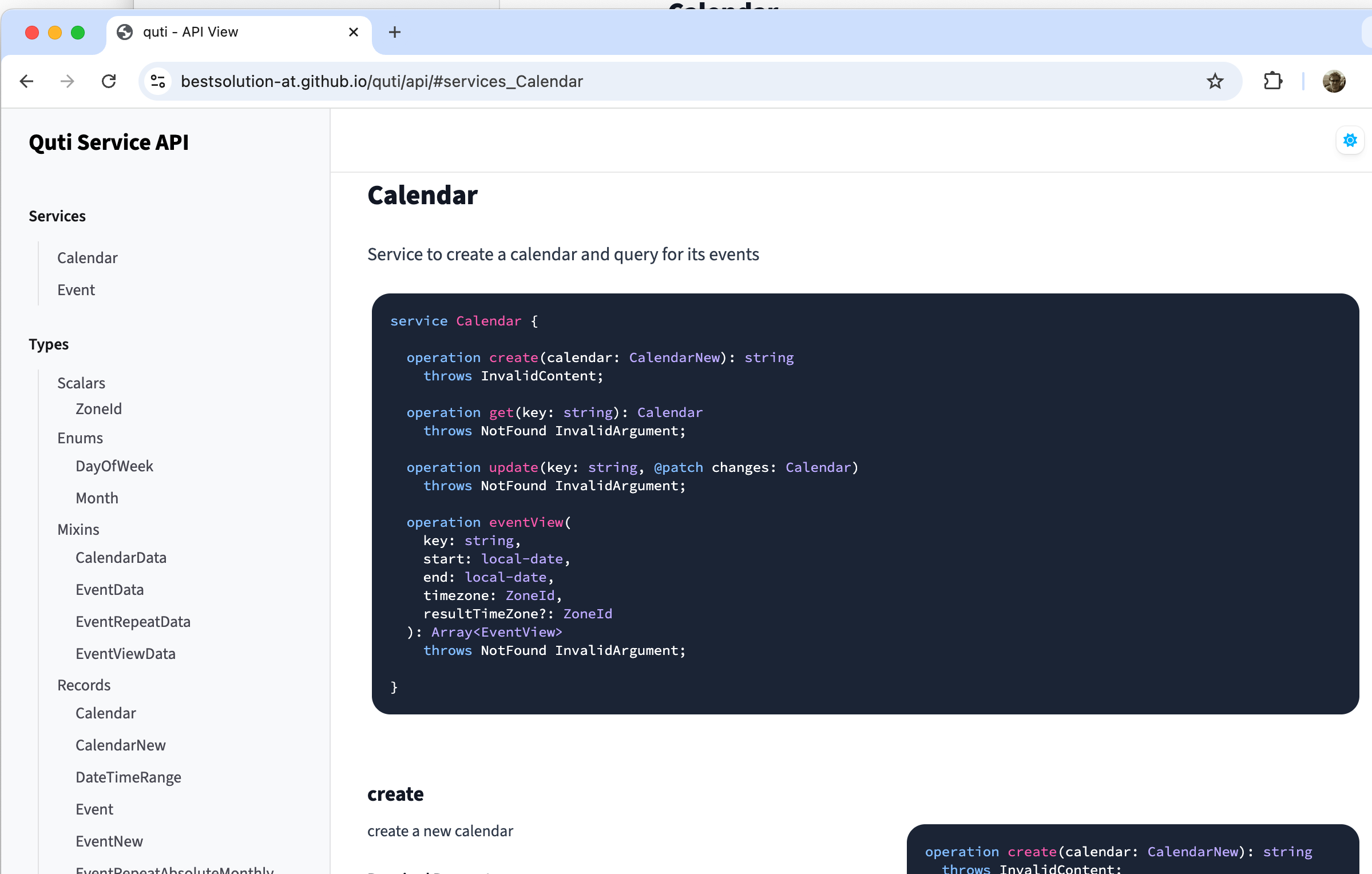 We released 0.0.3 of our Documentation Viewer Webcomponent. You can see it in action at https://bestsolution-at.github.io/quti/api/#services_Calendar